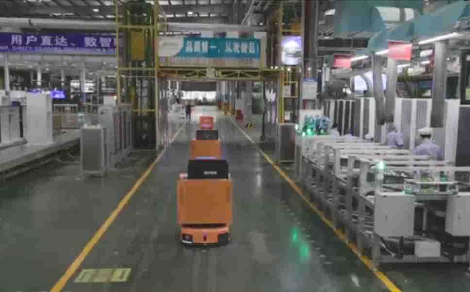 为车载冰箱物流配送打造的智能解决方案,,,,包含产中物流通过潜伏举升AMR搬运至线边,,,,产后成品物流智能仓储,,,,流程包含产中物流智能齐套入库,,,线边安灯叫料AMR智能配送至线边,,,成品入库、、、、出库,,,通过无人堆高车机器人,,智能仓储管理替代人工作业管理,,,实现更高存储、、、更高效率、、更具柔性化的解决方案。。。