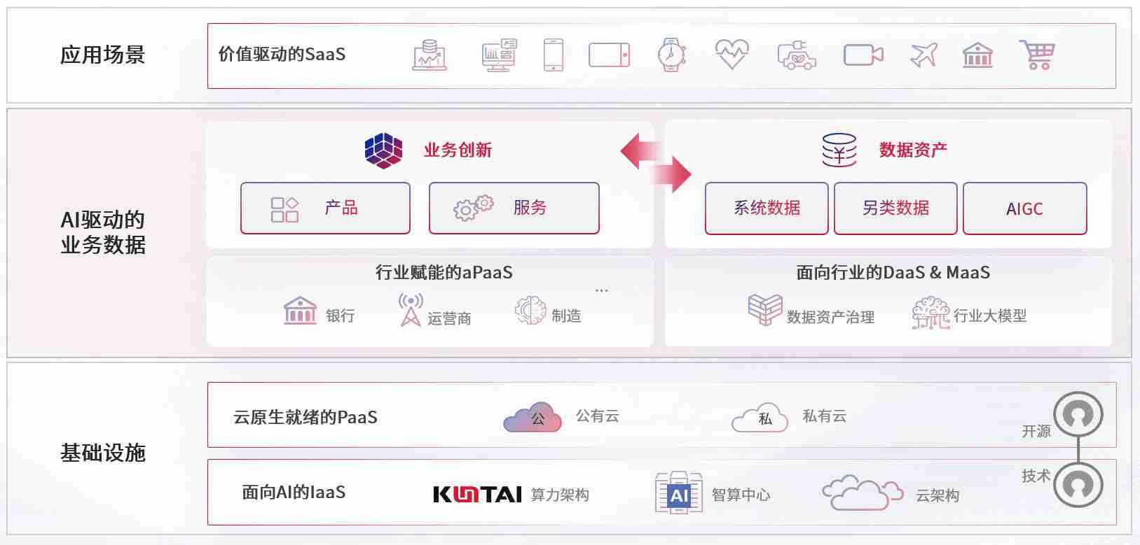 数字时代,,,围绕企业数字化转型的关键要素,,,金年汇数码开创性的提出数云融合战略和技术体系框架,,,着力在云原生、、、、数字原生、、、、AI原生和信创产业上架构产品和服务能力,,,,为处在不同数字化转型阶段的快消零售、、、、汽车、、、、金融、、、医疗、、、、政企、、、教育、、、运营商等行业客户提供泛在的敏捷IT能力和融合的数据驱动能力,,,,构建跨界融合创新的数字业务场景和新业务模式,,助力企业级客户建立面向未来的核心能力和竞争优势,,,,全面推动社会的数字化、、智能化转型升级。。。。